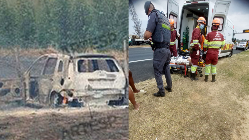 Segundo informações da Polícia Rodoviária, o motorista perdeu o controle do veículo, um Ford Fiesta, e entrou em uma área de vegetação que estava em chamas. O carro ficou totalmente destruído pelo fogo.