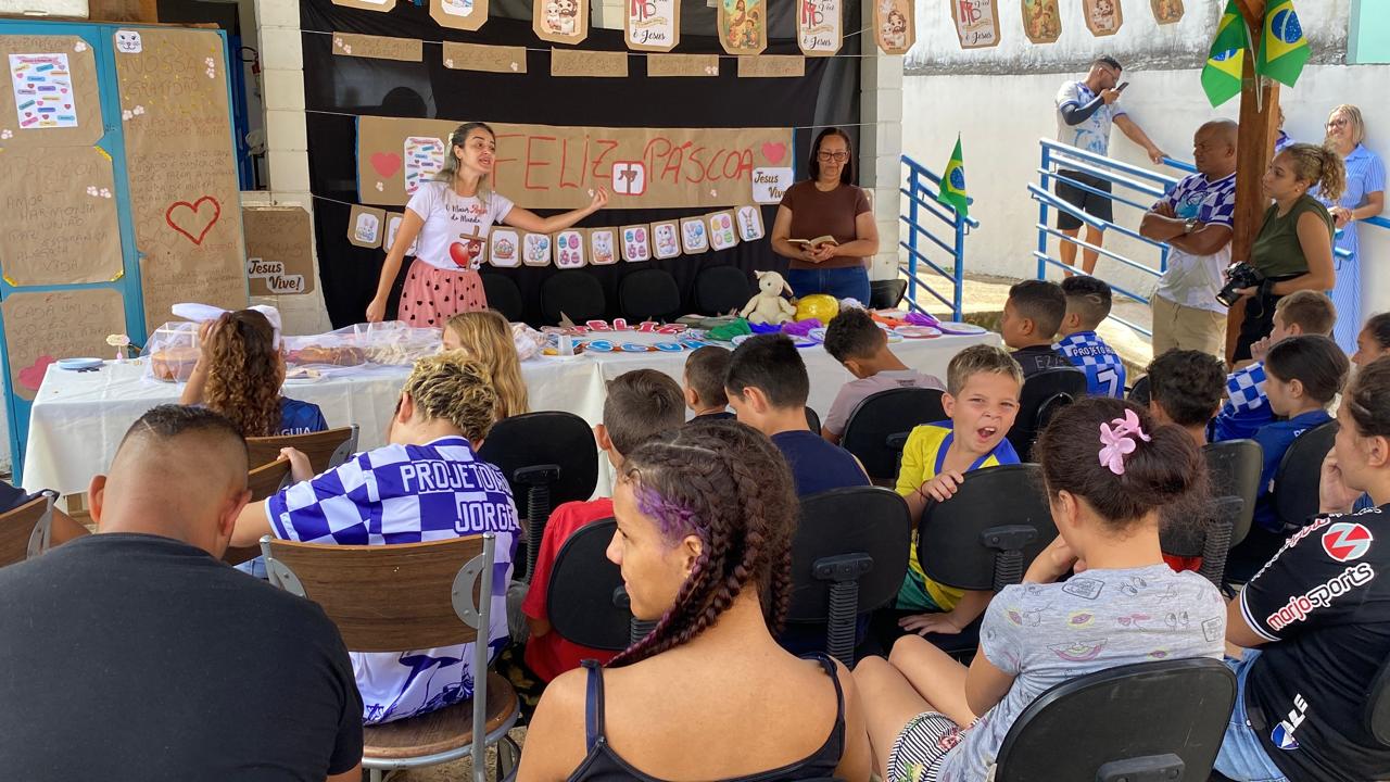 A programação começou com um café da manhã especial, preparado com carinho para receber cada criança. Em seguida, elas participaram de um momento de interação com fotos alusivas à Páscoa e, logo depois, assistiram a um teatro emocionante que abordou a importância da Semana Santa e o verdadeiro significado da Páscoa.