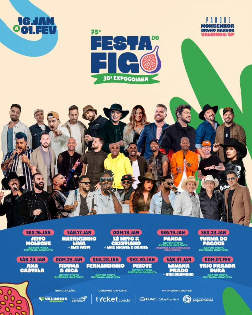 Esta é uma realização da Prefeitura de Valinhos em parceria com a Organização Estrela. Ao todo, serão 13 dias de programação intensa, reunindo não apenas música, mas também gastronomia típica, exposições agrícolas, parque de diversões e valorização da cultura local.
