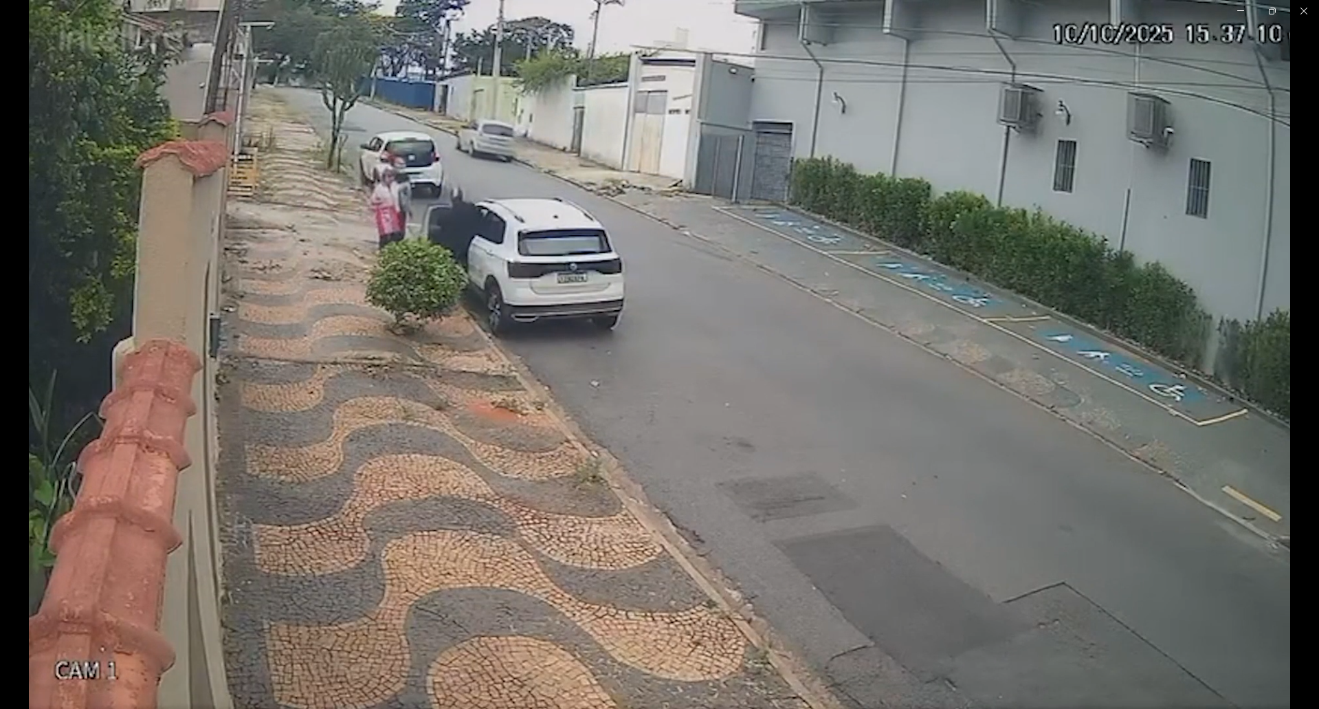 Uma idosa de 86 anos foi vítima de um sequestro relâmpago na tarde desta sexta-feira (10), na Rua Araguaçu, no Jardim Rafael, região do Taquaral, em Campinas (SP). Câmeras de segurança flagraram o momento em que dois homens mascarados a abordaram logo após ela estacionar o carro.