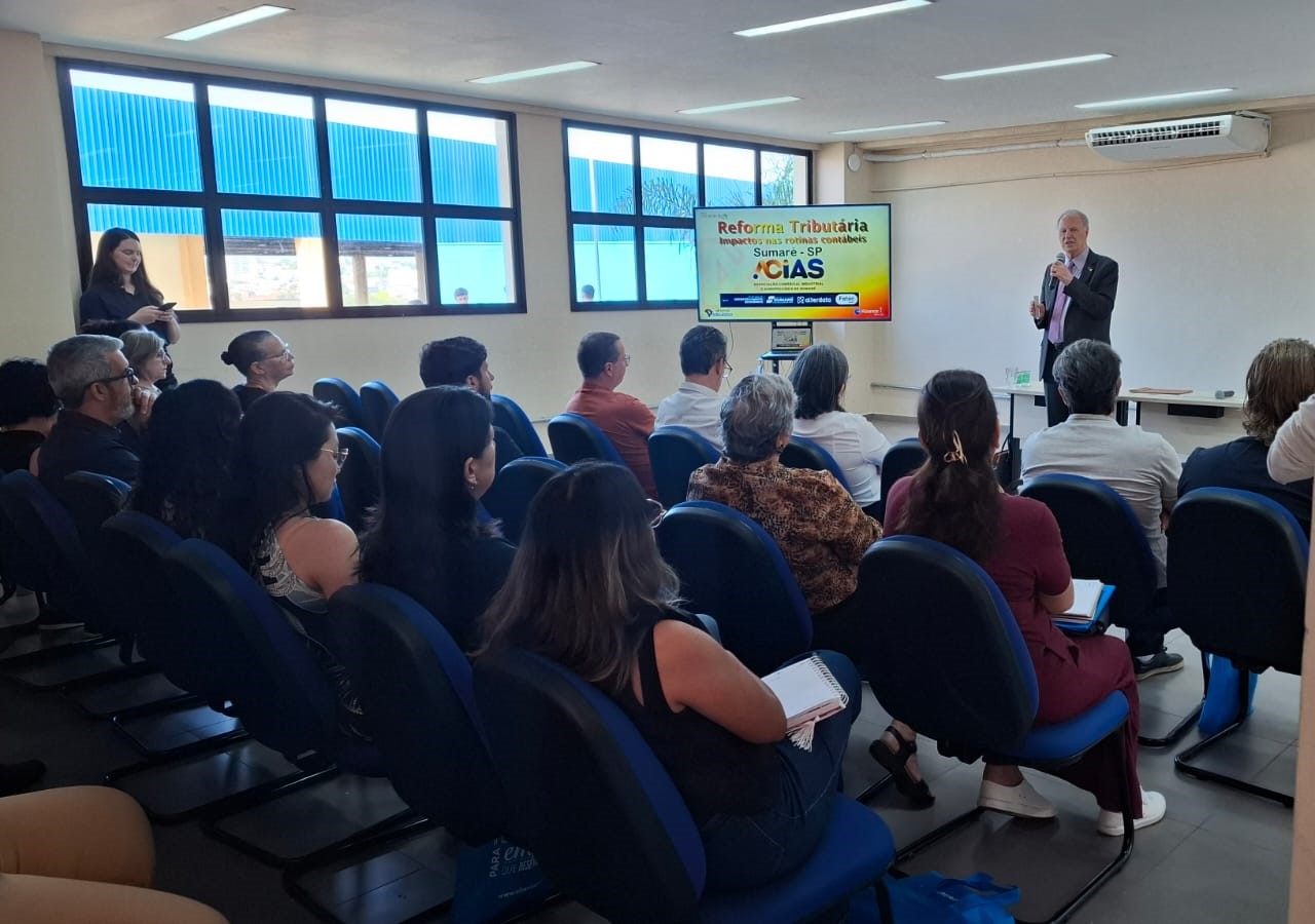 A ACIAS (Associação Comercial, Industrial e Agropecuária de Sumaré), em parceria com a Fatec (Faculdade de Tecnologia de Sumaré), realizou na manhã desta quarta-feira, 24/9, a palestra Reforma Tributária – Contador e Empresários, Se Preparem!”, com o palestrante Dante Barini. O evento reuniu cerca de 50 participantes, entre profissionais de contabilidade e empresários.