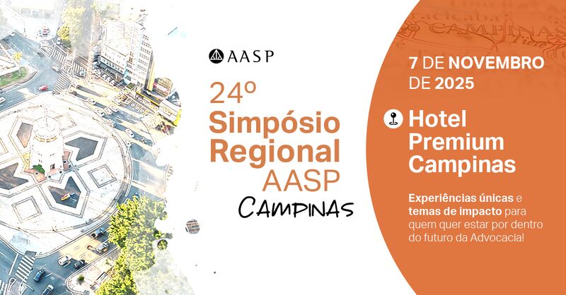 Em 7 de novembro de 2025, a AASP – Associação dos Advogados promove o 24º Simpósio Regional, que será realizado no Premium Hotel, em Campinas/SP. O evento reunirá especialistas de destaque para debater temas jurídicos que estão no centro das transformações sociais e econômicas do país, como a Reforma Tributária aplicada ao Agronegócio, a Reforma do Código Civil e os impactos jurídicos da COP 30, que acontece no mesmo mês em Belém/PA.